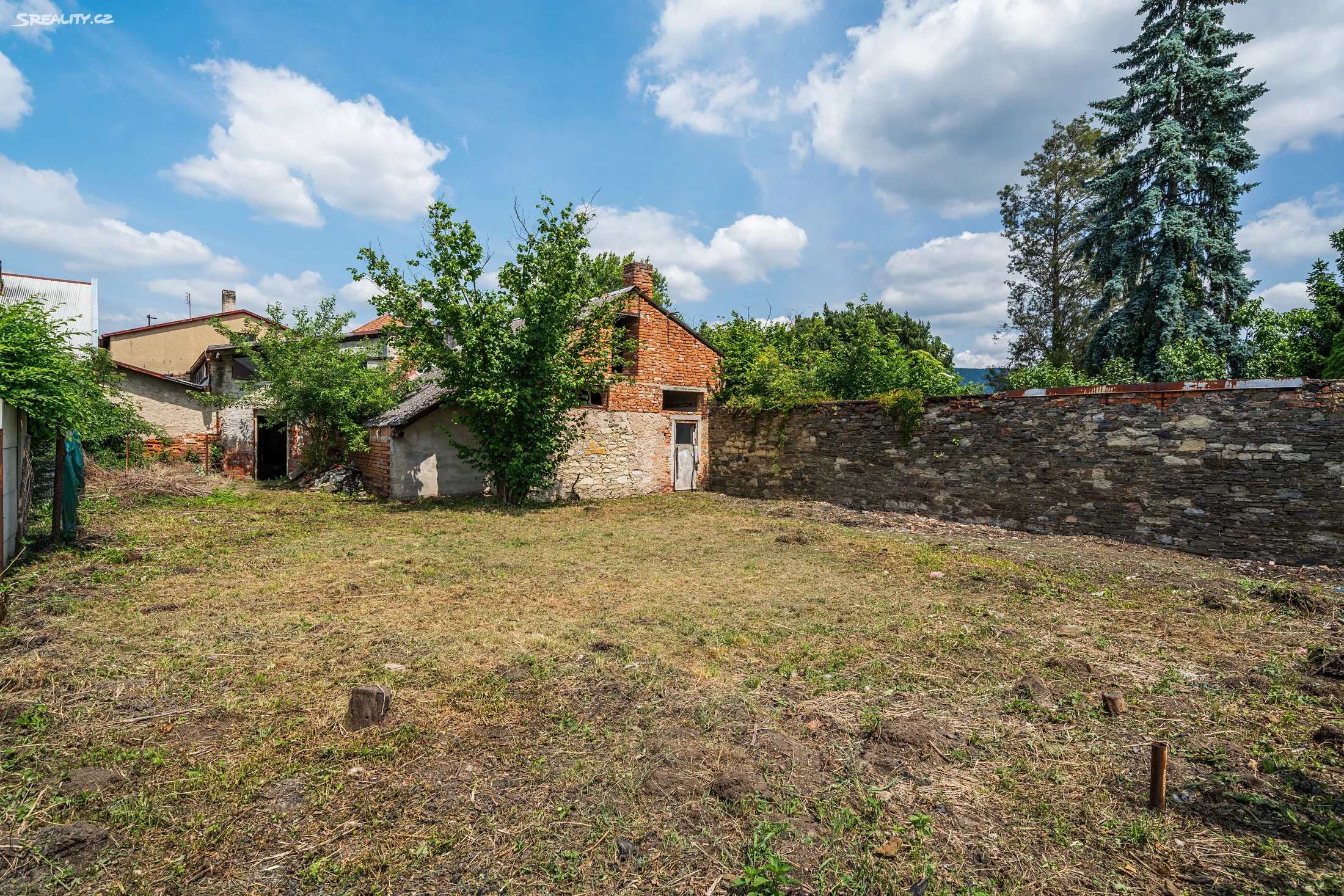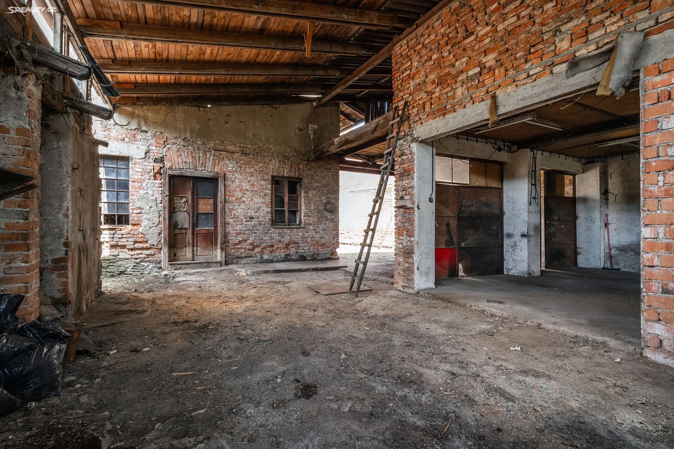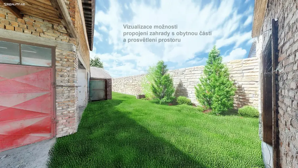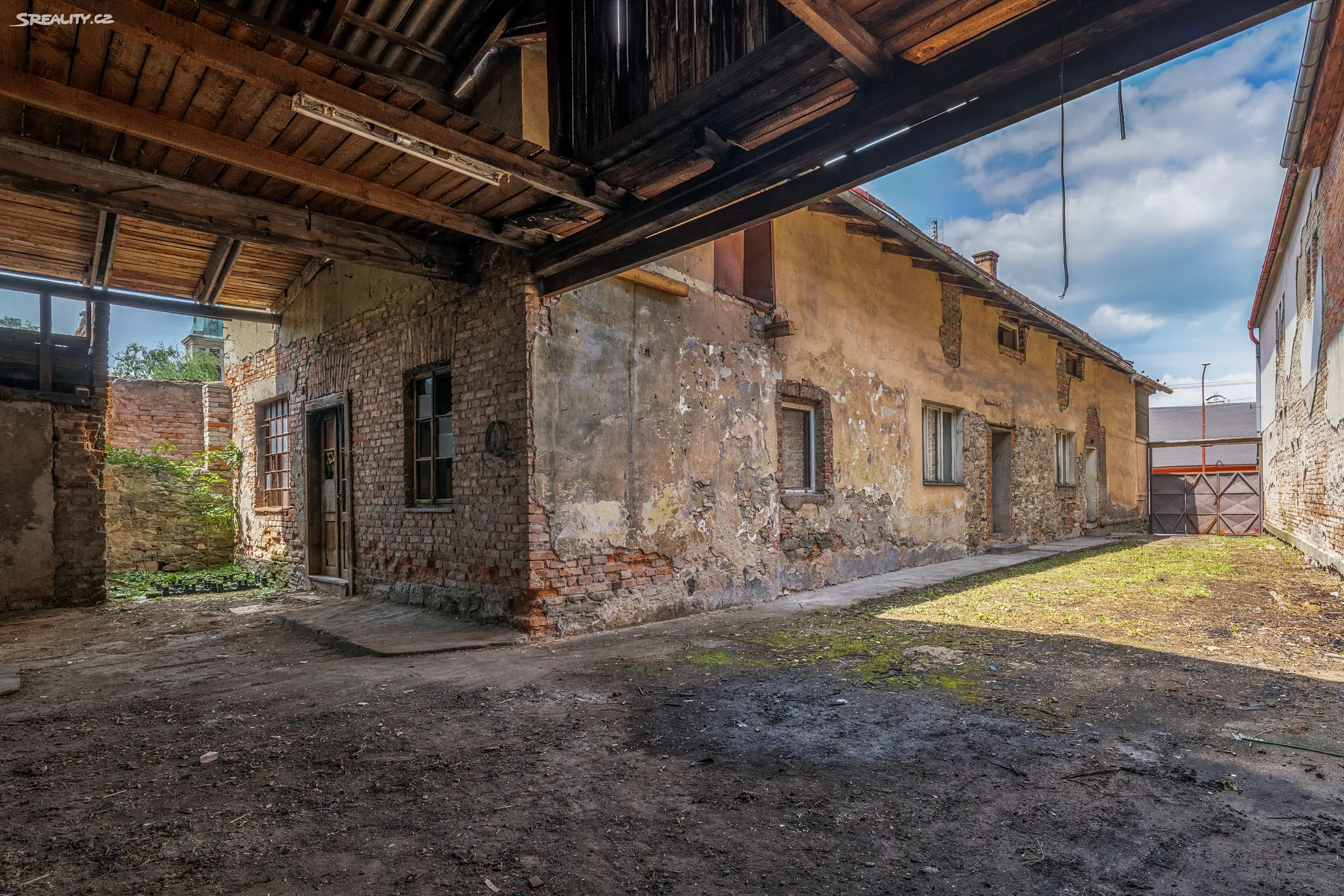 Z ulice na první pohled nenápadná stavba hned za vjezdovými vraty nabídne naprosté soukromí. Výhodou přístupu na pozemek je možnost vjezdu i nákladními vozy s téměř neomezenou výškou a parkování několika vozidel přímo na dvoře u domu. Ze dvora je možné vstoupit do domu třemi vchody a je tedy možné dům rozdělit na více bytových jednotek. Dvůr plynule pokračuje v zastřešenou parkovací plochu, která je spojena s halou a dílnou a nabízí široké možnosti způsobu využití pro výrobu, skladování, služby, chovu pro vlastní potřebu, sbírku aut či motorek apod.